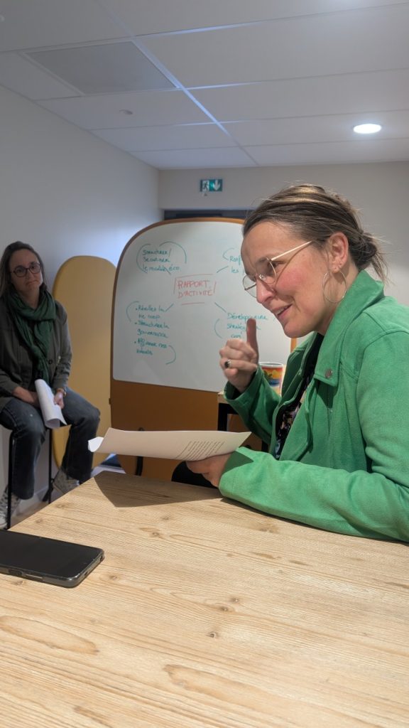 Le rapport financier et le rapport d’activité ont été présentés en petit groupe, tour à tour, dans des salles différentes. Une excellente manière de favoriser les interactions et de prendre possession des lieux.