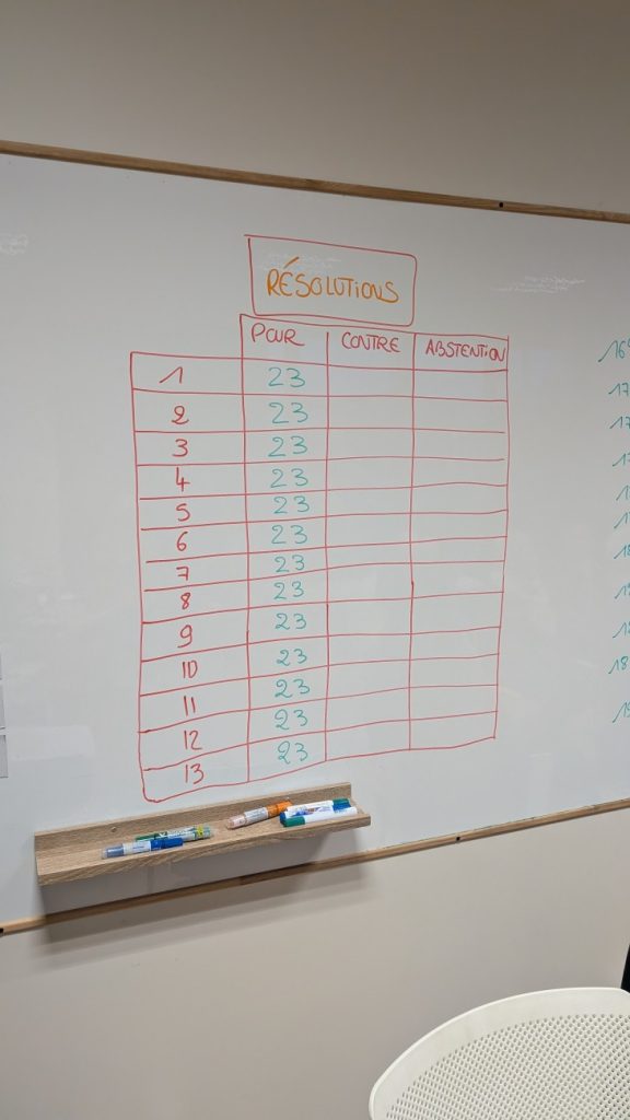 En amont, le conseil coopératif s’est mobilisé pour préparer cette assemblée dans les moindres détails : déroulé minuté, répartition des rôles, préparation des supports, organisation des votes…